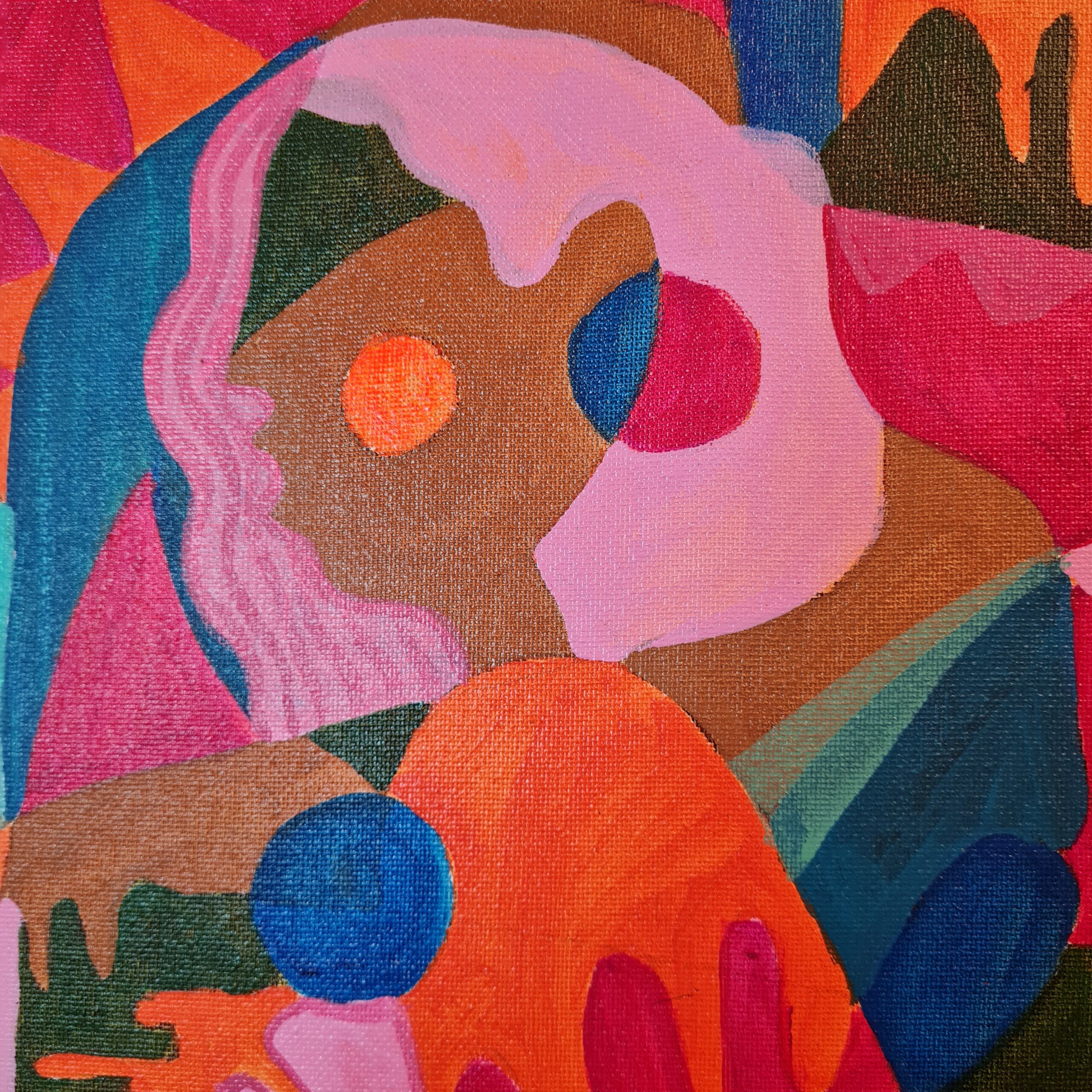 Pandora sits at the threshold between self and world — a figure dissolving into her surroundings as much as she emerges from them. This abstract, autumn-toned work explores change, uncertainty, and the moment just before becoming. The female form blends into sweeping foliage, blurring where she begins and nature ends, mirroring the myth’s tension between chaos and hope. Painted in vibrant, shifting colours, the piece embraces transformation as both unsettling and necessary. Pandora invites us to consider what opens when we surrender control — and what beauty rises from the unknown.
